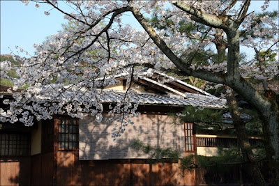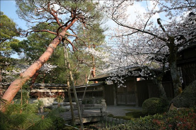 Bamboo blinds and cherry blossoms provide shade and shelter.