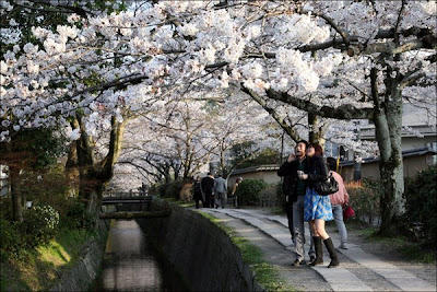 The palette of spring paints the Philosopher's Path is subtle shades of pink, green and yellow. Light filters through the intricate lace of cherry blossoms, falling like the brush strokes of an impressionist masterpiece. Is it really any wonder I love Kyoto?